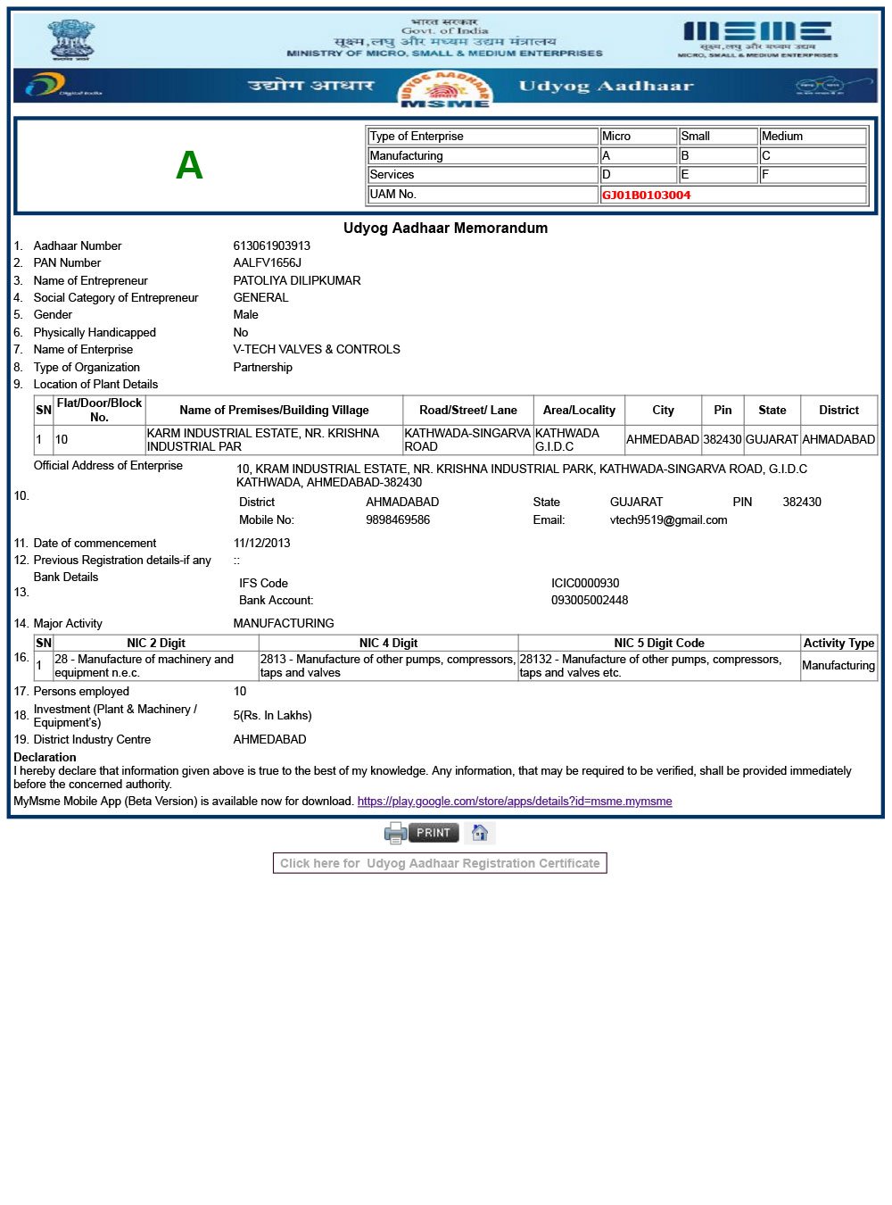 MSME Certificate