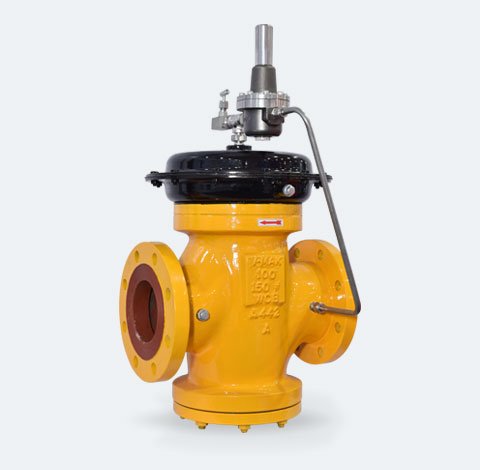 Series VT-217 Regulators are Pilot operated for control of gas & air pressure. In single stage, pressure reduction can be achieved very precisely up to 1/10th of the inlet pressure. Pilot operated Regulator gives very precise downstream pressure and very low fluctuation. They are extensively used as active and monitor control in series for Natural Gas Pressure Reducing System. Valve has very high flow Capacity and very precise regulation with the help of Pilot.
